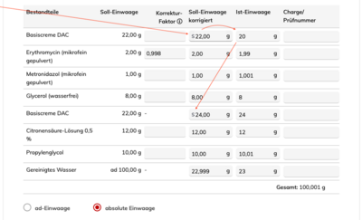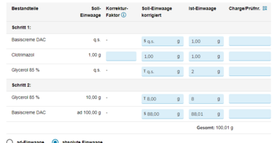 Wir haben die Einwaage-Funktionalität im Herstellungsprotokoll neu aufgebaut. Sie können dadurch Ihren Taschenrechner ab sofort bei der Rezeptur-Herstellung in der Schublade lassen.