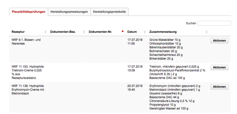 Unsere Archiv-Struktur wurde angepasst. Neben den einzelnen Dokumentenarchiven (z.B. für Plausibilitätsprüfungen, Herstellungsanweisungen) finden Sie nun in diesem Bereich auch übergeordnete Archive für die Rezepturen und Defekturen.