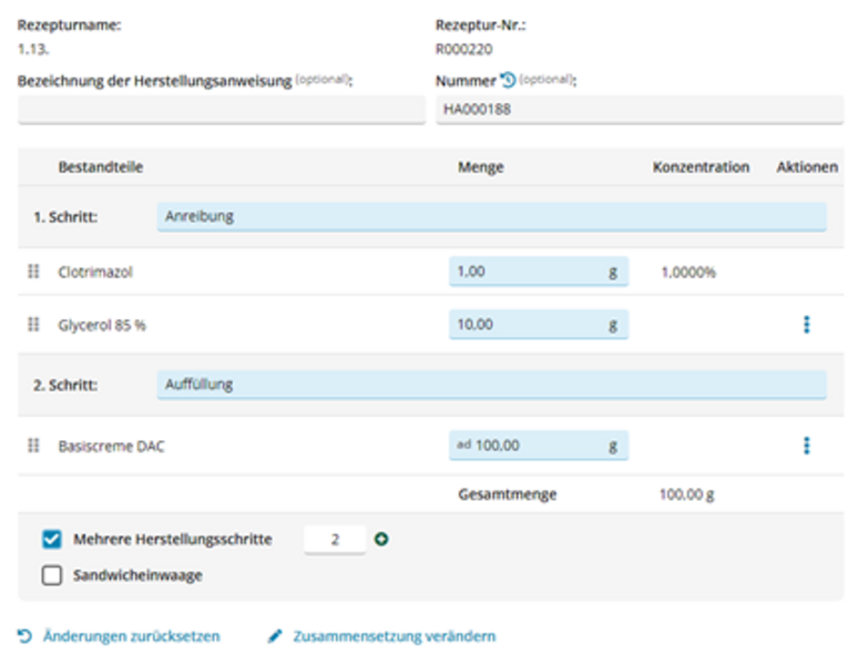 Unterteilung Ihrer Rezeptur in mehrere Herstellungsschritte