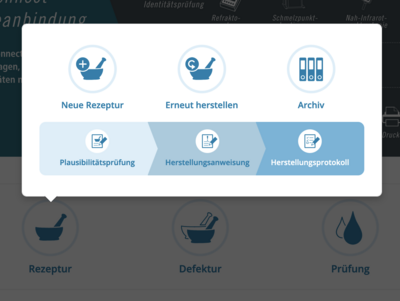 Mit dieser Version vereinfacht sich der Prozess deutlich. Rezepturen und Defekturarzneimittel können nun über die Aktionsfläche "Erneut Herstellen" im Menü schnell und einfach neu aufgerufen und dokumentiert werden.