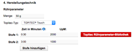 Verbesserung der Festlegung von Rührvorgängen in der Herstellungsanweisung inklusive Einbindung einer Rührparameter-Bibliothek für TOPITEC® Touch und Expert.