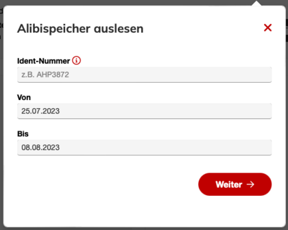 Im Gerätemanager öffnen wir den Ailibispeicher und geben die Ident-Nummer Herstellungsprotokolls ein, dessen Einwaagen geprüft werden sollen und klicken auf den Button „Weiter“