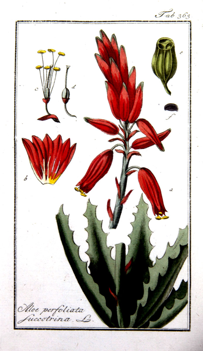 (1) Im März oder April abgeschnittene Blätter werden mit der Schnittfläche nach unten aufgeschichtet am Rande einer mit Ziegen- oder Pferdehaut ausgelegten Grube → auslaufender Saft wird gesammelt → langsames eindicken durch verdunsten an der Sonne → kristalline Aloinabscheidung → lederfarbene Hepatica-Ware → außen matt