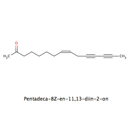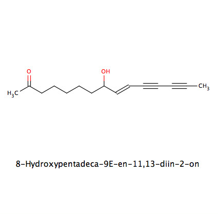 • Ketoalkenine (Pentadeca-8Z-en-11,13-diin-2-on, 8-Hydroxypentadeca-9E-en-11,13-diin-2-on und weitere); keine Alkamide!