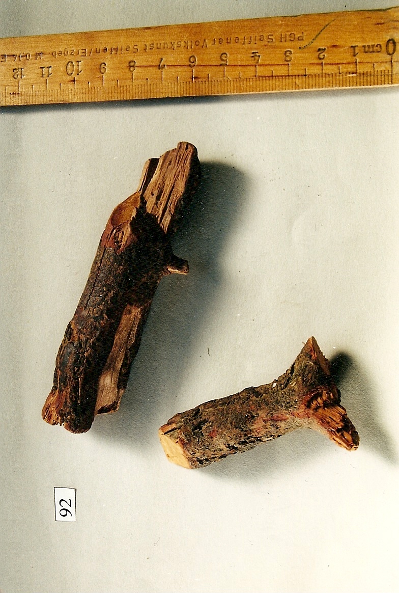 Mikroskopie: Tüpfelgefäße; Rundliche Stärkekörner mit Spalt; gelbe Bastfasern und Calciumoxalatkristalle; rotbraune Korkfragmente; Rindenparenchym oft mit Stärke; pos. Fe(III)-Chlorid-Färbung