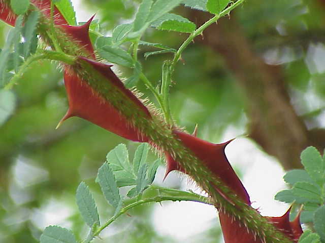 • Überhängende, bestachelte Äste